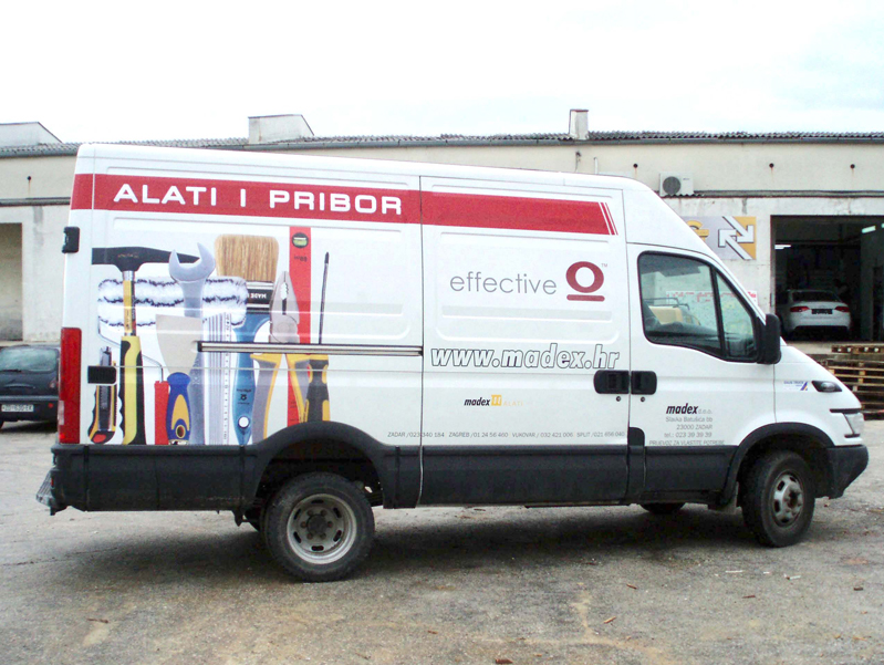 Vozila mogu biti odličan medij za oglašavanje. Vozila se oslikavaju nizom različitih samoljepljivih folija specijaliziranih za savijanje i izdržljivost na atmosferske utjecaje (hladnoća ili vrućina).