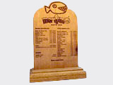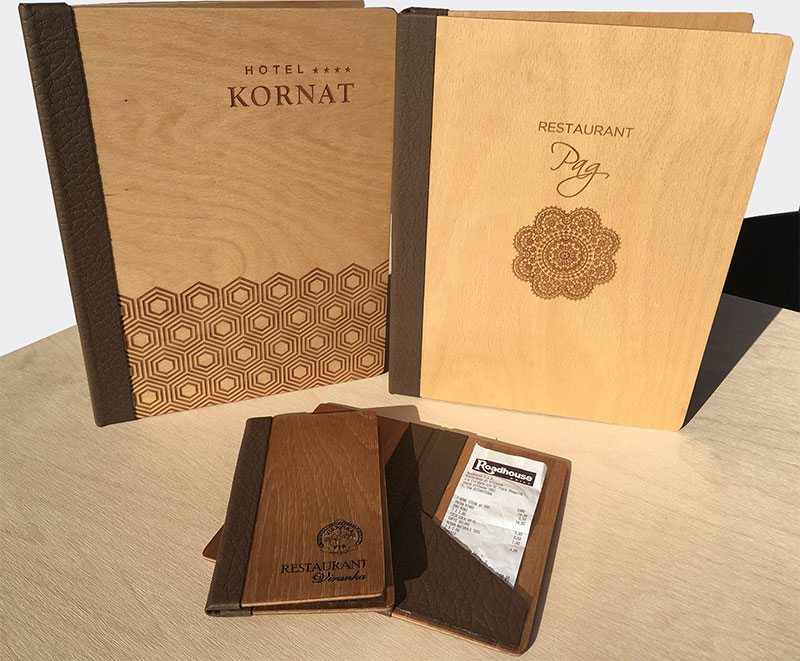 Višegodišnjim iskustvom u radu s različitim ugostiteljskim i hotelskim lancima razvili smo jedinstven program proizvoda specifičnih za te djelatnosti. Tu izdvajamo korice za jelovnike, kutije za jelovnike, vinske karte, A panoe, akcijske stalke, oglašivaće cijena, razne privjeske za ključeve napravljeni od drva, canvasa, pleksiglasa.